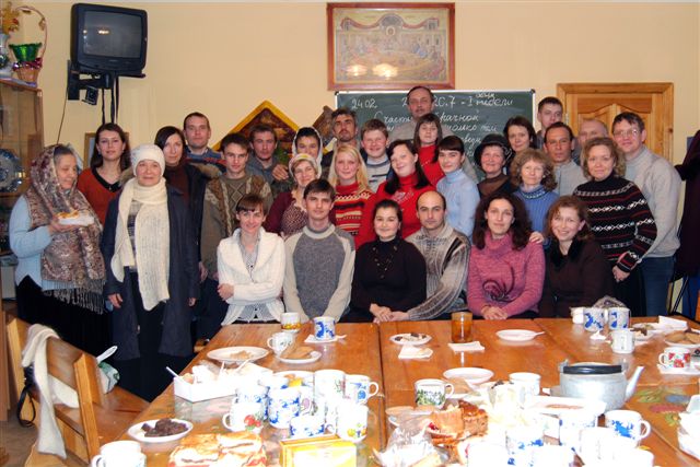 «половинкой». Начало нового учебного года ознаменовалось поздравлением с «новорожденными» - а их за лето у нас появилось четверо - младенчики Дмитрий, Ольга, Ева и Елизавета. И поздравлением с семейным юбилеем (25 лет совместной жизни с матушкой Любой) настоятеля Покровского собора прот. Евгения. В этот день молебен об укреплении семьи и благополучии брака, который традиционно совершается каждый месяц для институтских слушателей, служили два настоятеля - на подмогу к о. Евгению пришел о. Алексей с Красной Горки. К обычным прошениям добавилось моление студентов о том, чтобы занятия второкурсников вернулись на прежнее место, в Покровский собор, где к концу второго года обучения число слушателей превышало 40 человек.нового учебного года ознаменовалось поздравлением с «новорожденными» - а их за лето у нас появилось четверо - младенчики Дмитрий, Ольга, Ева и Елизавета. И поздравлением с семейным юбилеем (25 лет совместной жизни с матушкой Любой) настоятеля Покровского собора прот. Евгения. В этот день молебен об укреплении семьи и благополучии брака, который традиционно совершается каждый месяц для институтских слушателей, служили два настоятеля - на подмогу к о. Евгению пришел о. Алексей с Красной Горки. К обычным прошениям добавилось моление студентов о том, чтобы занятия второкурсников вернулись на прежнее место, в Покровский собор, где к концу второго года обучения число слушателей превышало 40 человек. Да, трудно согласиться с тем, что «Невозможно выйти замуж по любви». Хочется поспорить, доказать, убедить, а затем … снова и снова спешить на занятия, потому что: • «Эти курсы помогли мне сохранить семью и помогают ее укреплять!!! Очень жалко, что этому не учат в школах. Я смогла понять свою роль в семье, как я должна относиться к мужу. Благодаря «институту семьи» моя семья стала крепче, отношения чище, ссоры из семьи ушли. Мы с мужем приняли решение принять таинство венчания». (семья Р.) • «Курсы для меня являются островком радости, дополнением кроме церковных служб, где вместе могут встретиться столько много православных, особенно молодёжи…». (Максим К.) | |
