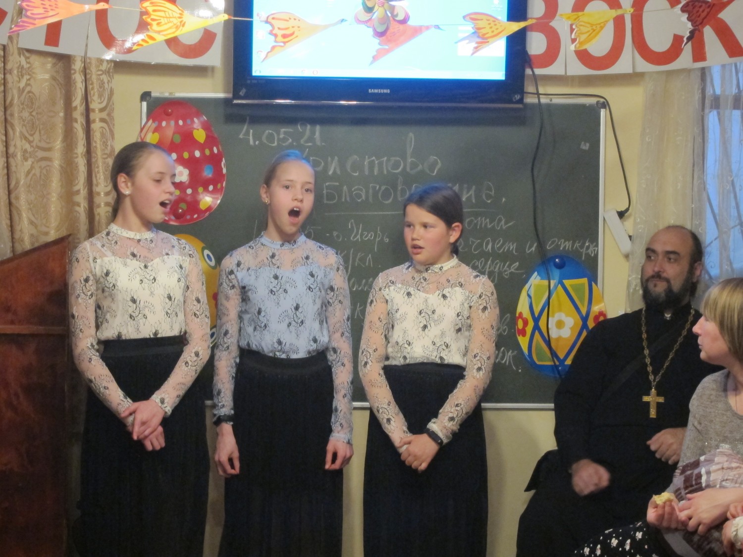 4 мая 2021 года состоялся праздник, посвященный празднику светлой Пасхе. Было много студентов и гостей (33 взрослых и 23 ребенка). Поздравления начались традиционно, выступлением ВШ «Покров». Затем гости внимательно вслушивались в поздравительные слова Святейшего Патриарха Кирилла. Все с большим удовольствием и радостью отвечали на оригинальные вопросы викторины, которую приготовила дружная семья Сыч. А после поздравительных слов о. Георгия выступали члены семьи Суляевых. Очень интересная фотовыставка работ, была представлена Евгенией. Замечательные праздничные номера подарили благодарным зрителям дети и взрослые ИБиСа, а так же гости встречи. Атмосфера праздника ощущалась не только в улыбках и воодушевлении, но и в чайной церемонии с многочисленными явствами!!! Христос Воскресе! Воистину Воскресе Христос!!!
