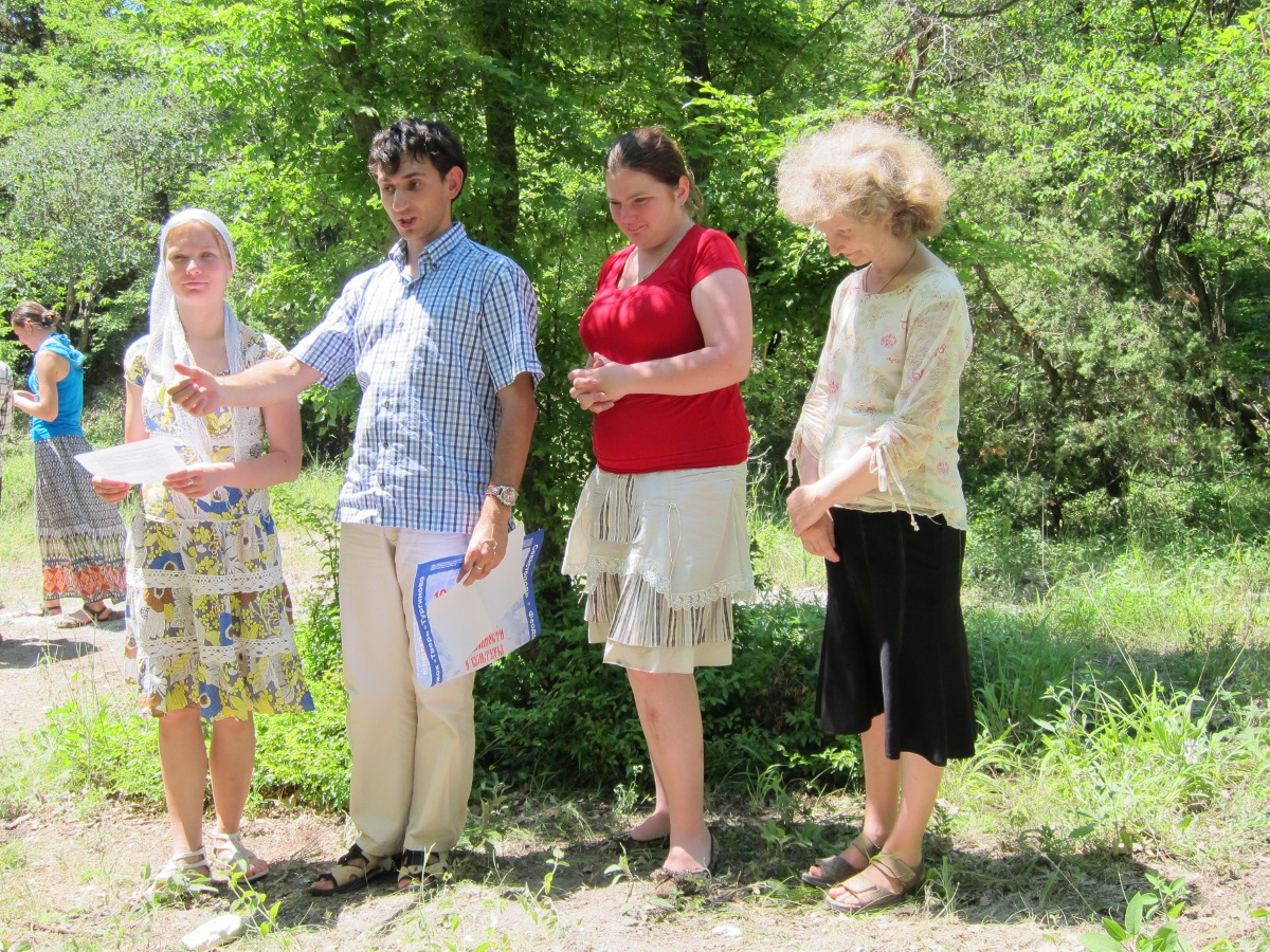 Как быстро промчался учебный год! Вот уже и долгожданный экзамен. Звучит почти парадоксально, но не для ИБиСа. Для нас экзамен не только подведение итогов, не только «смотр» знаний, но и новая встреча с храмом (в этот раз с храмом святителя Луки на Сахарной головке), встреча со священником - о. Александром настоятелем церкви в честь св. Луки. Это событие совпало с большим праздником-днем Всех Святых, поэтому все были именинниками. После божественной литургии о. Александр рассказал студентам об истории церкви, об ее Святынях. Затем состоялась братская трапеза на природе, и только потом творческие группы приступили к сдаче экзамена. Каждая творческая группа или творческая « семьЯ» заранее готовила выступление по определенным темам. На суд всем присутствовавшим были представлены разнообразные программы с играми, вопросами, сценками. Вот некоторые отзывы; - Как здорово, что все мы здесь сегодня собрались!....... - Спасибо! Мы стали как-то ближе!..... - Мы счастливы, потому что можем радоваться! Мы счастливы, потому что можем любить Бога! И мы любим Бога! Каждое мгновение жизни – это подарок Неба, часто авансом. Спасибо Богу за все!!! Самый главный итог прошедшего учебного года (да и не только его) следующие слова: «мы как одна большая семья!!!!» А что же дальше? Дальше долгожданное лето с его неожиданными встречами, поездками, праздниками и новый учебный год в ИБиСе, где мы трудимся во имя Бога, ради своей семьи , ради своего Спасения!! Если вы еще не с нами приходите не пожалеете! Ждем!!! | |