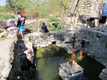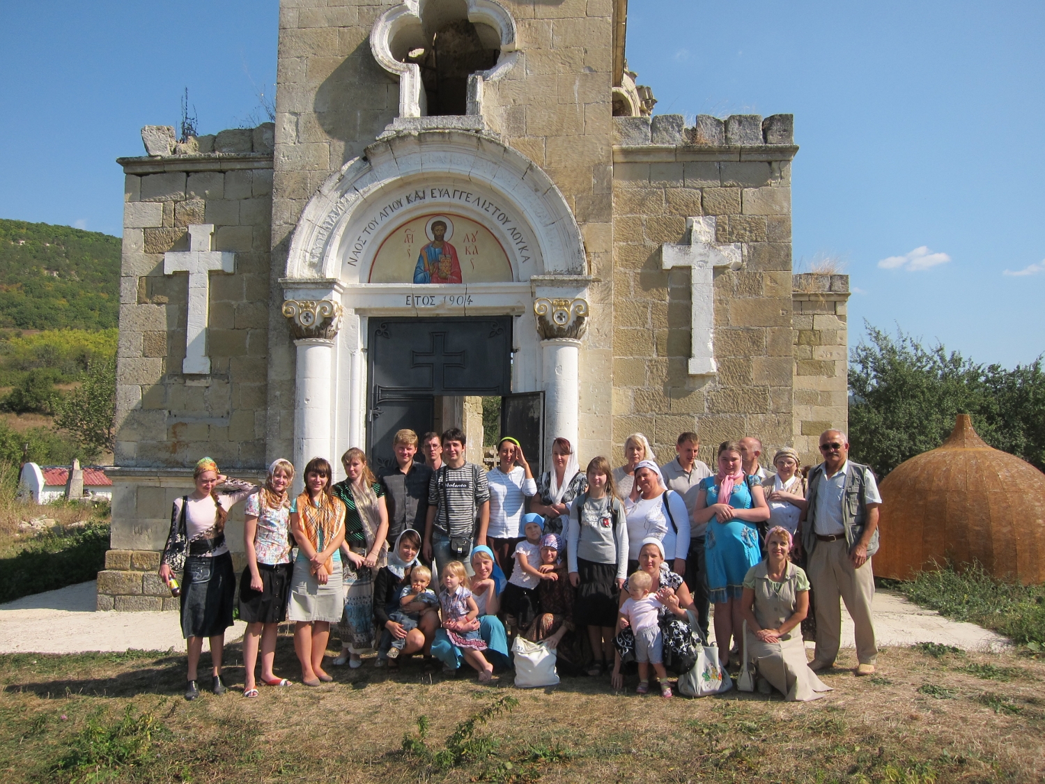 24 сентября 2011 года студенты ИБиСа посетили с. Лаки, трагическое место Крыма, о котором мало кто знает.... Посетили разрушенный храм Св. Луки ... * * * Наши дети о Великой Отечественной войне узнают из американских фильмов. Вместе с голливудскими солдатами они спасают рядового Райана или следят за дуэлью снайперов у самых ворот кино-Сталинграда. И, конечно, про Хатынь, о которой блокбастеров не снято, они не слышали. Это мы помним, что так называлась одна из белорусских деревень, сожженная вместе с жителями фашистскими карателями. В Лаки можно попасть из села Высокого либо из села Баштановка, что в долине реки Качи. Наш проводник по затерянному Крыму - Иван Коваленко - эти дороги знает наизусть. Мы выехали из Высокого. Мимо рукотворного озера, мимо поклонного креста путь привел к старинному храму. Рядом с ним - небольшое кладбище. Поодаль - крошечный скит. Чуть ниже, в долине, хорошо сохранившиеся бассейны. С подернутой ряской черной водой. Сколько лет этим сооружениям - сто, триста, шестьсот? Кстати, считается, что название Лаки, или Лака, в переводе с греческого и означает бассейн. Собственно, это все, что осталось от села, в котором под защитой горы святого Ильи с незапамятных времен жили греки, потомки феодоритов - древнего коренного крымского народа и потомки бойцов Балаклавского батальона. В окрестностях Лак сохранились остатки церкви св. Троицы, возведенной еще в начале XV века, а недалеко от нее - развалины еще более древнего храма с остатками кладбища. На одном из надгробных камней надпись, датируемая 1362 годом. Греки редко покидали свои любимые Лаки. А что им было делать за их пределами, если плодородная долина давала все необходимое для жизни: на лугах пасли скот, под солнцем вызревал виноград, а местный табак славился на всю Тавриду... Пролетели столетия. Наступил кровавый XX век. Во время фашистской оккупации независимые лакские греки продолжали жить в довоенном ритме: они работали, подсчитывали трудодни в своем колхозе «Нео зои», а колхозный председатель Владимир Лели принципиально не снимал красный флаг над сельсоветом. Понятно, что партизаны (к сведению: большинство крымских партизан в самые тяжелые годы войны были греки) часто наведывались на островок советской власти - в Лаки. Командир Бахчисарайского партизанского отряда Михаил Македонский говорил о том, что «...отряд своим существованием был обязан жителям Лаки, которые оказывали партизанам помощь едой, одеждой, а в морозы устраивали на постой. Вокруг было много других сел, но в каждом из них жили хотя бы несколько предателей...» В Лаках предателей не было. За эту непокорность греки и были преданы огню. Свидетелем уничтожения деревни стал тринадцатилетний Юрий Спаи, племянник Николая Спаи, легендарного разведчика Карасубазарского партизанского отряда. Мы встретились с Юрием Михайловиче, и он рассказал, что, когда фашисты разгромили партизанский отряд, те, кто остался жив, пришли в деревню Лаки. Затем деревню окружили добровольцы - крымские татары из карательного батальона Раимова. Жителей собрали перед сельсоветом, обыскали. - Несмотря на то, что ничего подозрительного фашисты не нашли, - говорит Юрий Спаи, - в сторону сразу же отогнали мужчин. Среди них были мой дядя и два брата. Я, тогда еще наивный подросток, подошел и спросил: «Дядя Митя, а вы чего здесь?» А он мне по-гречески, ч