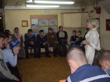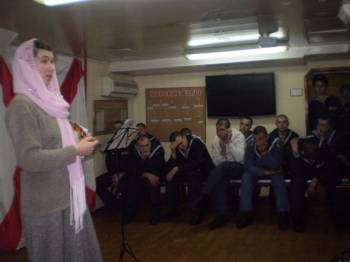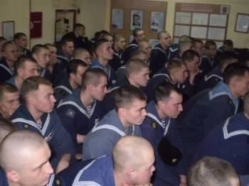 Очередное занятие Института Брака и Семьи состоялось 14 февраля 2010 г.на борту БПК «Керчь» в день празднования Сретения Господня и Дня православной молодежи. Тема любви и верности никого не оставляет равнодушными, надежда на создание крепкой и счастливой семьи вызывает у моряков- черноморцев немало вопросов и ,что радует, желание этому научиться. В непринужденной обстановке незаметно пролетели 2 часа времени. Слушая песни в исполнении семейного дуэта Дмитрия и Елены Осипенко, братьев Михаила (7 лет) и Глеба (5 лет) Сабельниковых, все присутствовавшие почувствовали себя одной большой дружной семьей. Главный «секрет» счастья был раскрыт - надо учиться терпеть и прощать, и что БОГ есть ЛЮБОВЬ! Удивительная песня «Прощеное воскресенье» настроила всех на определенный лад: