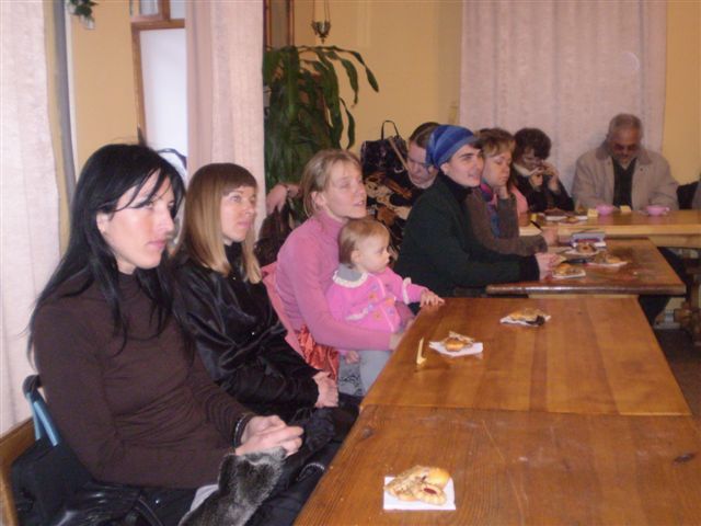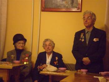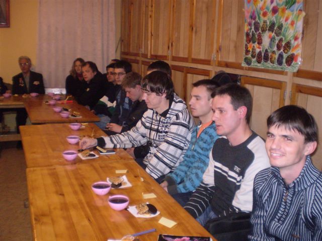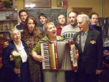 13 апреля 2010 года участниками праздничной программы в честь дня святых жён-мироносиц стали слушатели 2 курса ИБиС, ветераны ВОВ и музыкант Лариса Лукаянова. Литературно-музыкальная композиция на тему песен военных лет никого не оставила равнодушной. 85-летние ветераны Слёнины Пётр Александрович и Нина Ивановна, Кологривова Александра Павловна в этот вечер не только пели, читали стихи, но и танцевали вальс под восхищёнными взглядами молодёжи. Многие подпевали и просили дополнительно исполнить любимые песни. Этот встреча происходила в день поминовения усопших – Радоницу, поэтому на доске появлялись имена дедушек, бабушек и родителей участников войны. Все присутствующие были охвачены одним чувством – ЛЮБВИ. | |