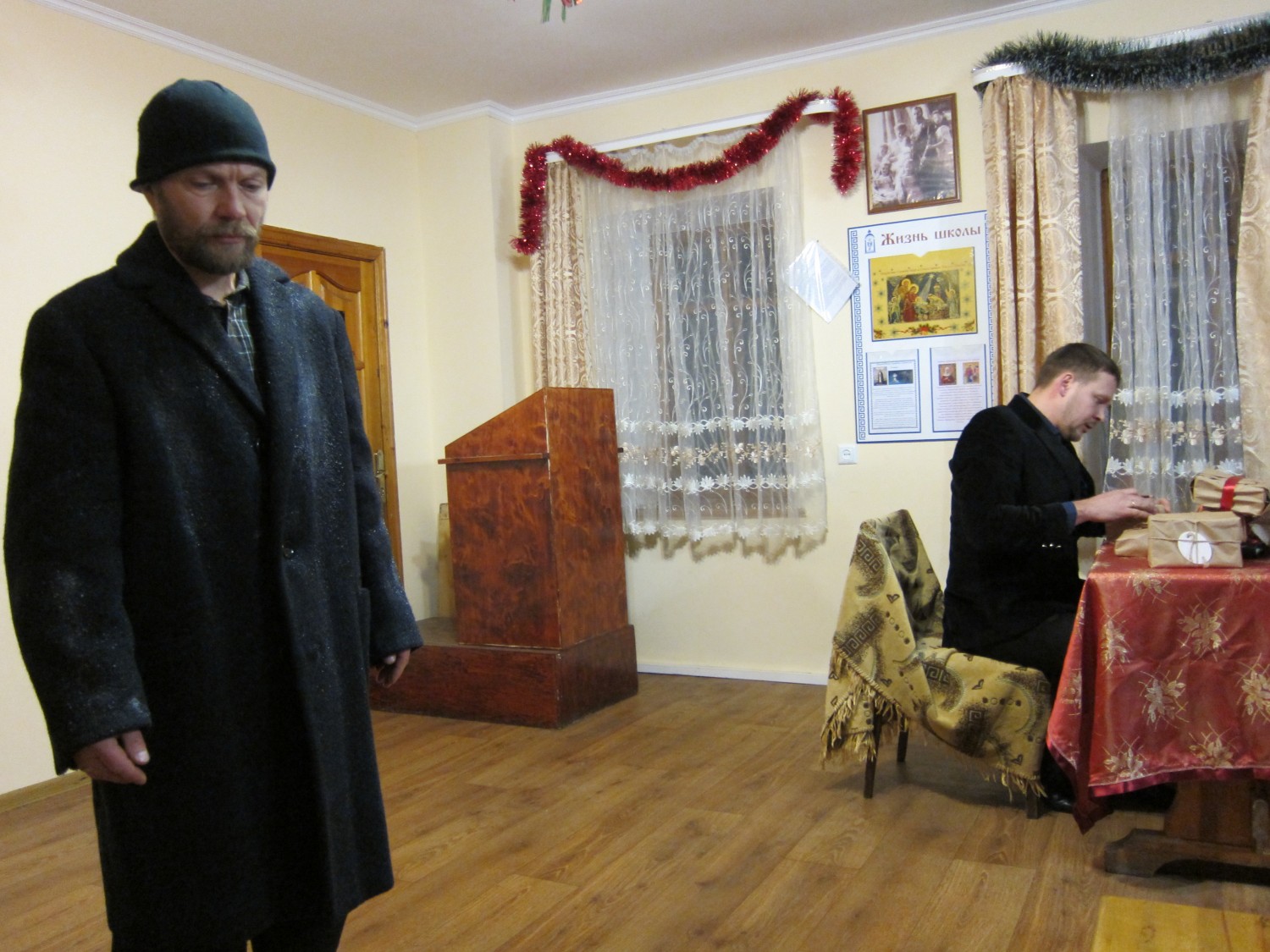 После продолжительных аплодисментов, криков «Браво» и «Молодцы», а также добрых слов в адрес начинающих артистов, все гости праздника перешли в библиотеку Покровского собора. Здесь их ждала еще одна постановка — по произведению Антона Павловича Чехова «Нищий». В спектакле приняли участие как новички — студенты первого курса, так и опытные «актёры» — второкурсники. После спектакля началось традиционное чаепитие.