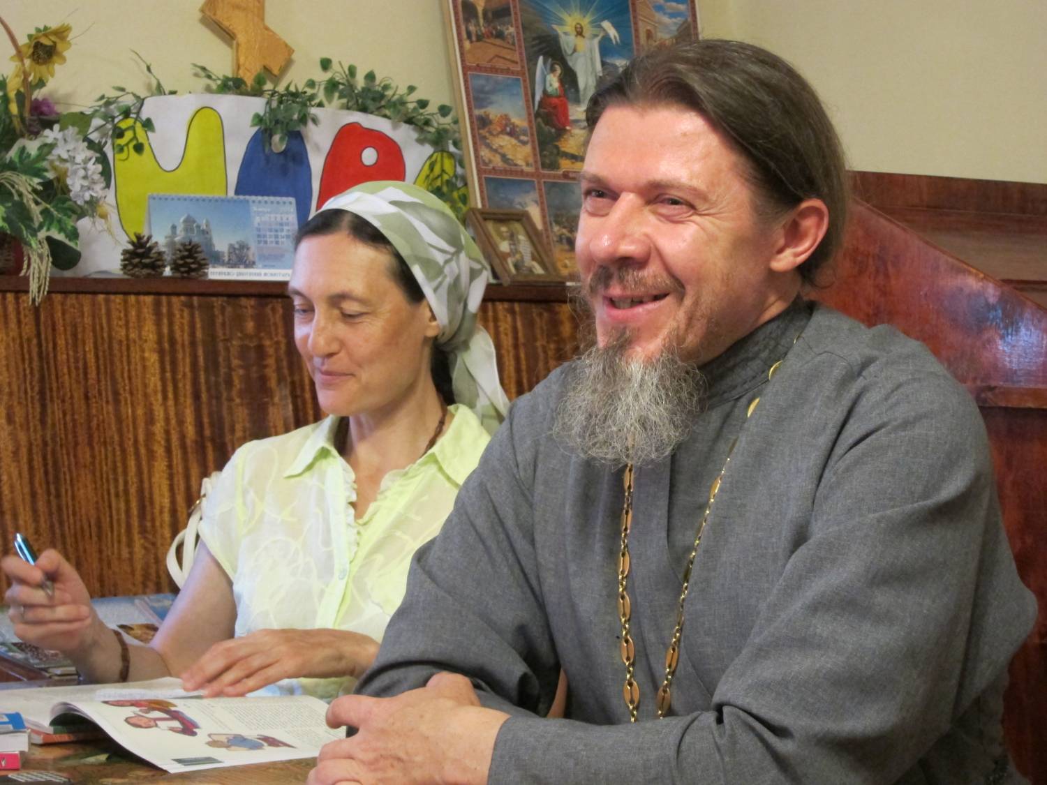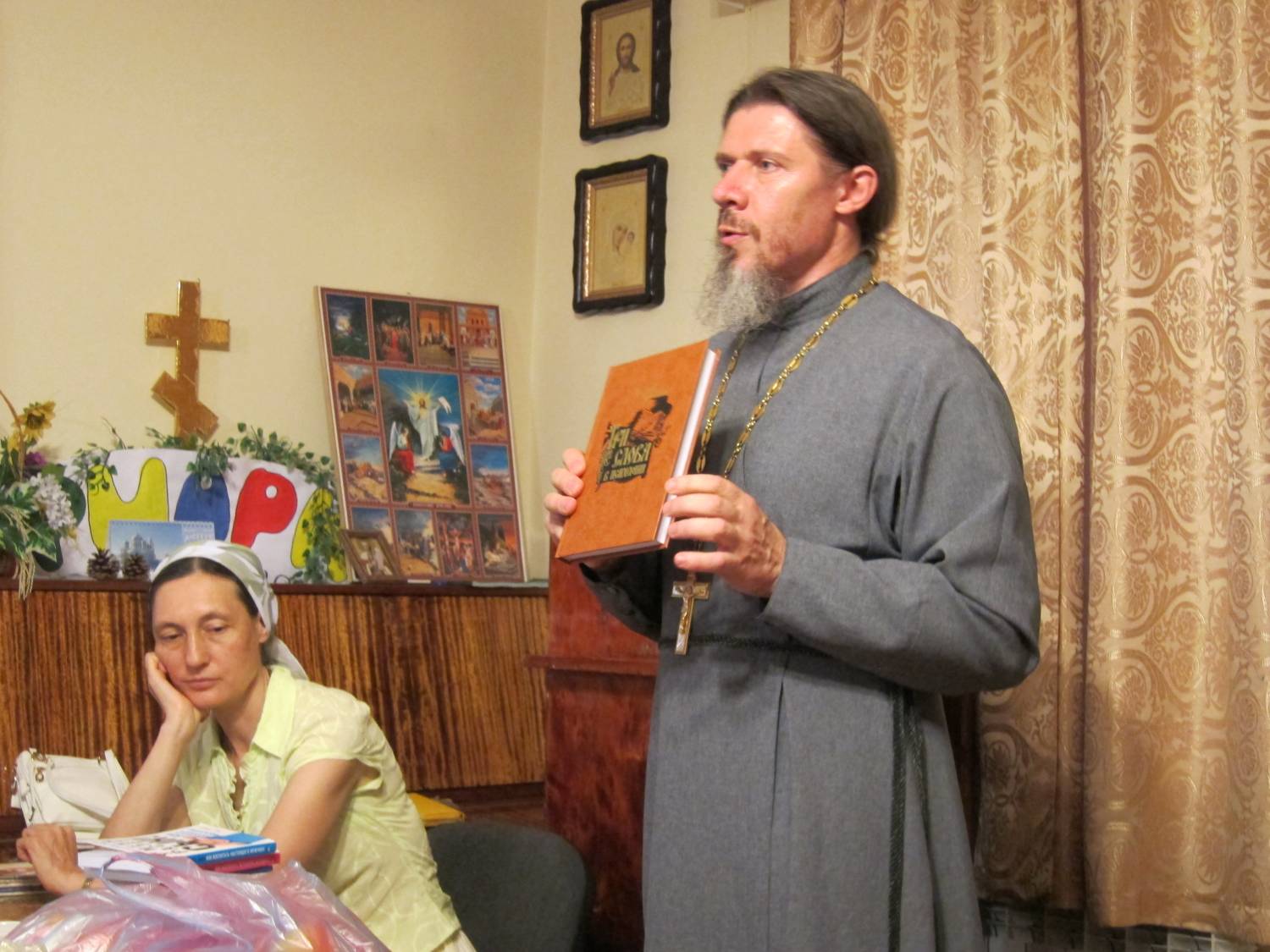15 июля 2014 года состоялась традиционная встреча. В главном – единство, в спорном – свобода и во всем любовь! Такая тема была озвучена на «летних встречах» в ИБиСе. На этот раз в гостях были добрые друзья студентов о. Сергий и м. Ангелина. Каждый присутствующий получил необходимую духовную помощь. Ведь изучение православной веры это труд, который необходим и для создания или укрепления семьи. о. Сергий еще раз подчеркнул, что семья это единство!! Что Божья работа – это объединение, а вражья - разъединение. Батюшка подчеркнул, что цель семьи – это взращивание ЛЮБВИ, это искоренение своего эгоизма, своих привычек. Матушка Ангелина познакомила слушателей с новинками православной литературы по воспитанию детей, а также взаимоотношению супругов. Эти книги были подарены библиотеке ИБиСа. Такая традиция (пополнение библиотеки) стала для нас очень важной и полезной. Много вопросов было задано гостям и на всех у батюшки и матушки нашлись добрые ответы и полезные советы. Отведенные для встречи 2 часа пролетели как миг, ободряла лишь надежда о новой августовской встрече. Слава Богу, что Он нам посылает таких пастырей!! Многая и благая лета вам о.Сергий и м. Ангелина!!! | |