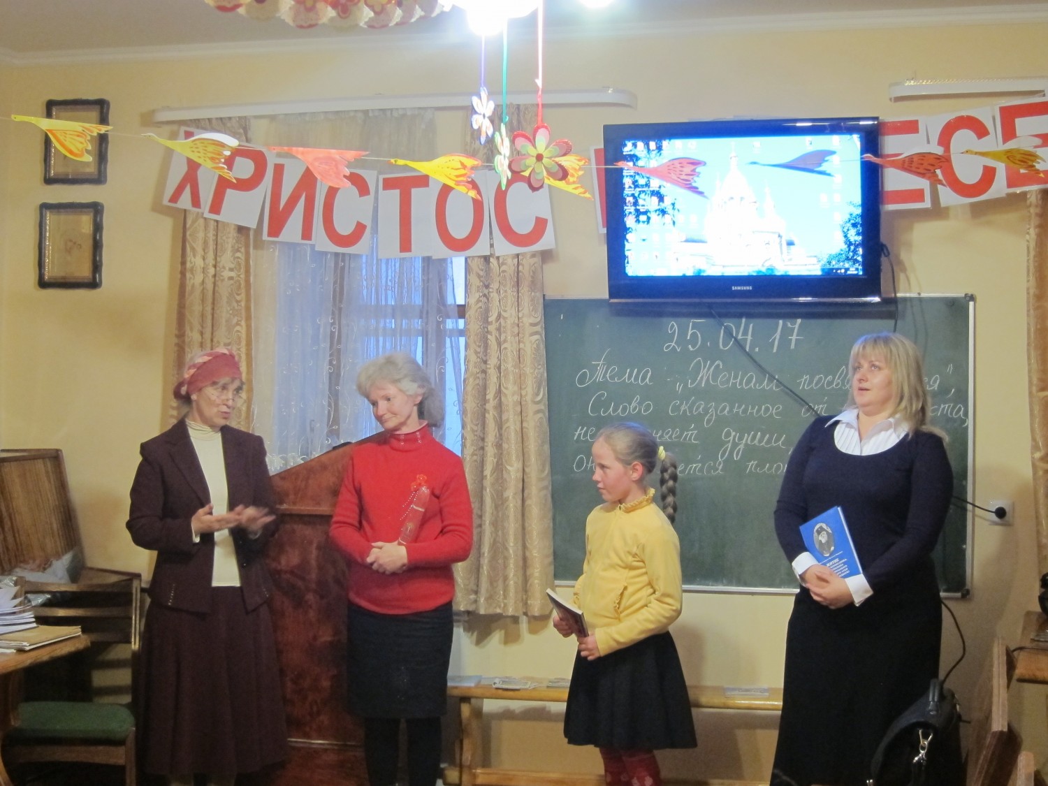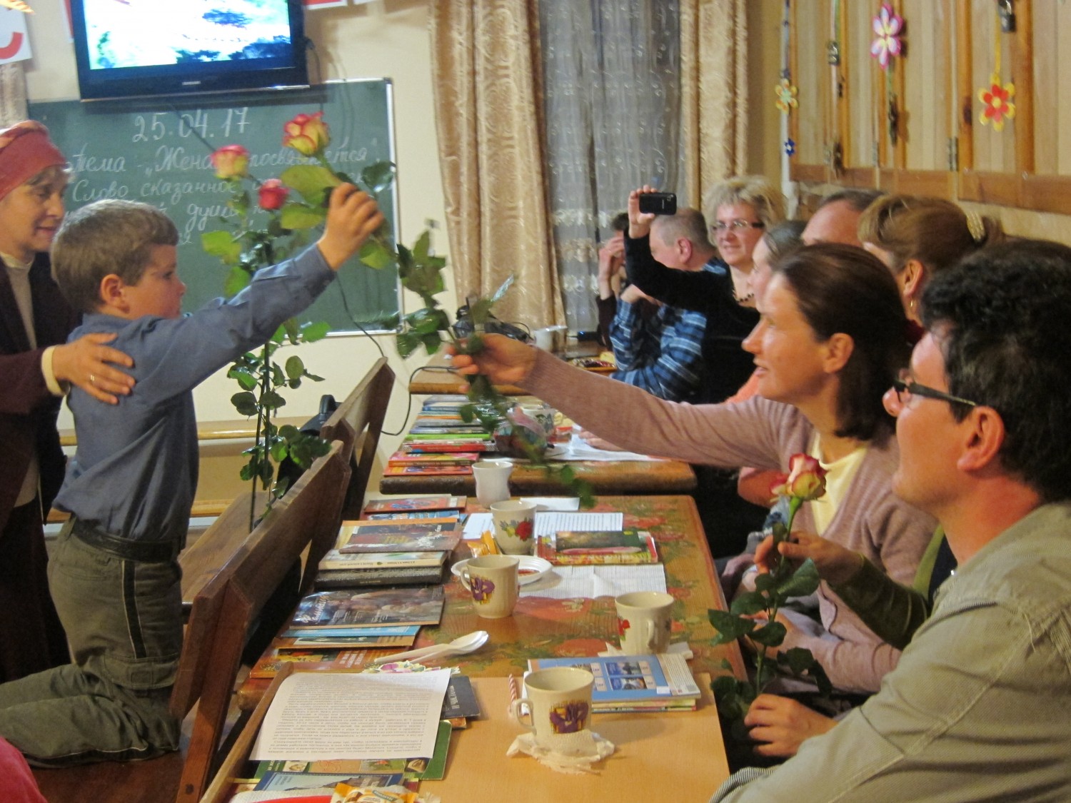 25 апреля 2017 года состоялся праздник, посвященный Женам Мироносицам. К нему особо тщательно и трепетно готовились мужчины, им очень хотелось порадовать наших женщин и девушек. На празднике звучали прекрасные стихи Т. Шороховой, нашей студентки Натальи Пинтюк и других авторов. Очень всем понравился «фитиль» о стоимости женского труда. Диана всем напомнила о служении женщины, о ее обязанностях. Конечно, в такой день звучала музыка, не только с экрана телевизора, но, главным образом, в сердцах всех присутствующих! Завершился праздник цветами, каждая студентка ушла домой с прекрасной розой и чудесным настроением. Святые Жены-Мироносицы, молите Бога о нас! | |